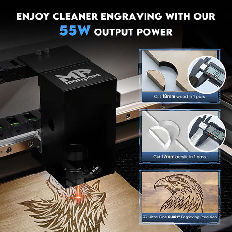 With the Monport ONYX 55W, you can accomplish your projects in less time, thanks to its higher laser power. The increased cutting speed allows for quicker turnaround times and boosts overall productivity. Spend less time waiting for your projects to be completed and more time bringing your creative ideas to life.