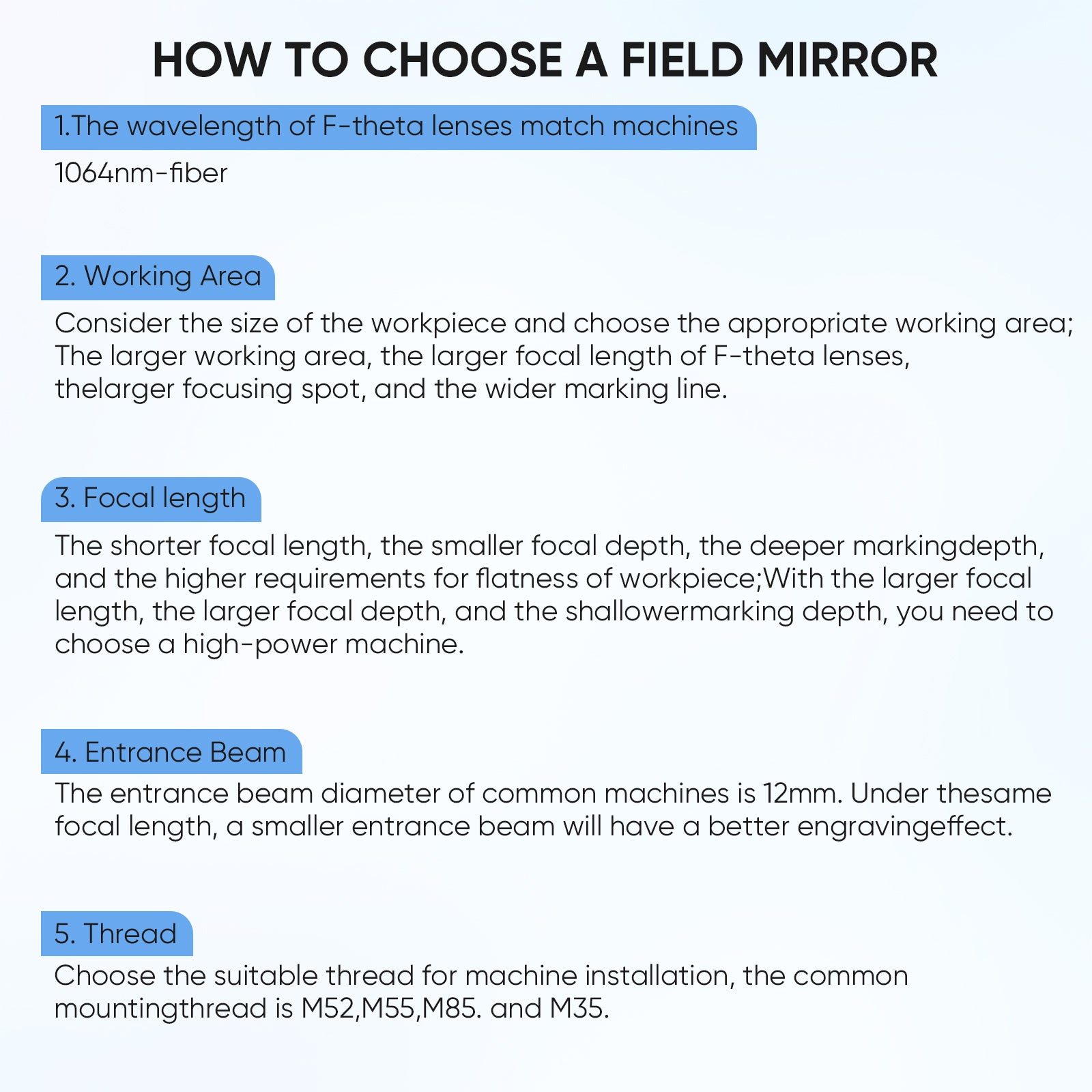 Monport F-Theta scanning lens can create clear markings in its 12" x 12" working area. It is perfect for laser marking, engraving, image transfer, material processing, and cutting systems.