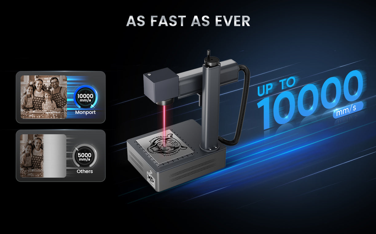 The brand new Monport fiber marking machine has a smaller size and lighter weight; Simultaneously maintaining the original high performance and a lifespan of up to 100000 hours.The fiber laser can engrave all metals. (gold, silver, copper, stainless steel, brass, titanium, etc.)