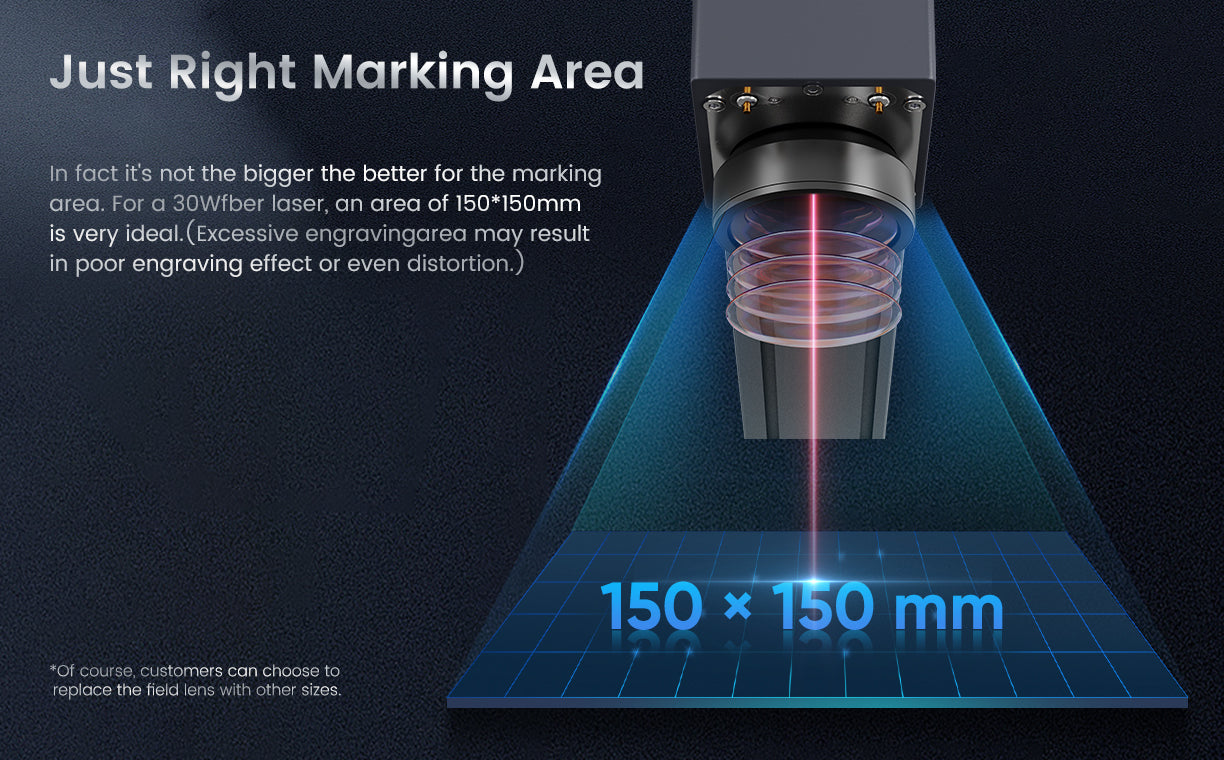 For a 30W fiber laser, an area of 150*150mm is optimal, as excessive engraving area may result in poor engraving effect or even distortion.After special tuning by Monport, even when carving at the edges, there will be no weak light.