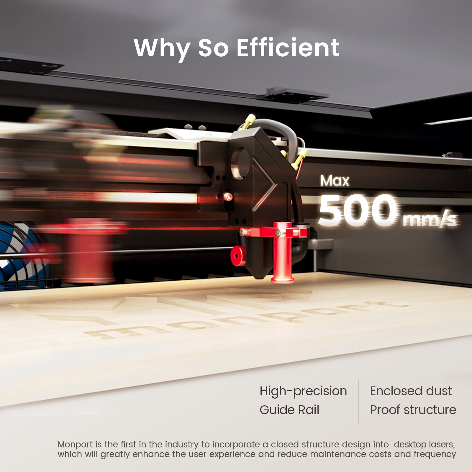 Why can the Reno65 achieve a processing speed of 500mm/s, comparable to top products in the industry? Because Monport has independently designed a brand new mechanism, including lightweight design, high-precision slides and customized motors. This is what makes the Reno65 so efficient and stable.